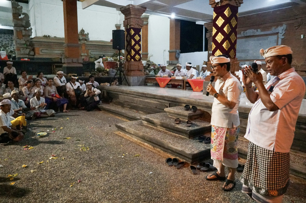 Karya Melaspas di Pura Desa Banjar Batulumbang Mewakili Bupati Badung, Sekda I Wayan Adi Arnawa menghadiri serangkaian karya melaspas, mendem pedagingan, Rsi Gana di Pura Desa, Banjar Batulumbang, Desa...