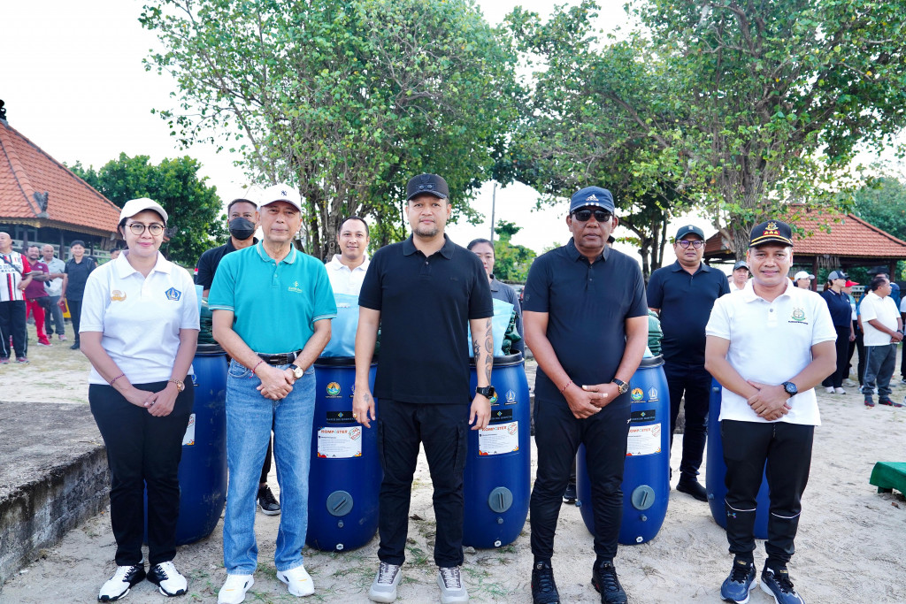 Wakil Bupati Badung, Bagus Alit Sucipta, didampingi Nyonya Yunita Alit Sucipta, memimpin apel Peringatan Hari Air Sedunia (World Water Day) Tahun 2026 di Pantai Kelan, Kuta, Badung, Jumat (27/3). Kegia...
