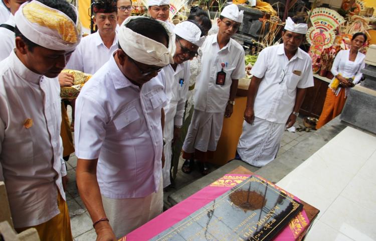 Wakil Bupati Badung I Ketut Suiasa menghadiri puncak karya wraspati kalpa, mamungkah, mapedagingan, mapadudusan, medasar caru manca kelud di Pura Melanting Desa Adat Lambing, Desa Mekar Bhuana, Kecamatan Abianse...