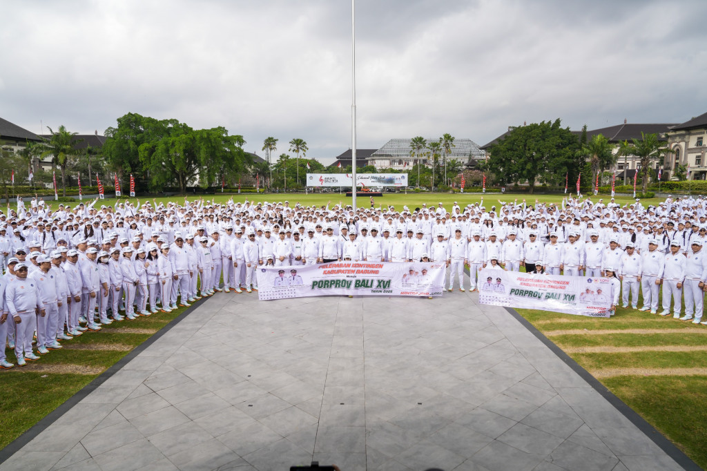 Bupati Badung l Wayan Adi Arnawa mengukuhkan serta melepas kontingen Kabupaten Badung dalam rangka PORPROV Bali XVI Tahun 2025 bertempat di Lapangan Puspem Badung, Jumat (15/8). Acara pengukuhan serta pelepasan ...