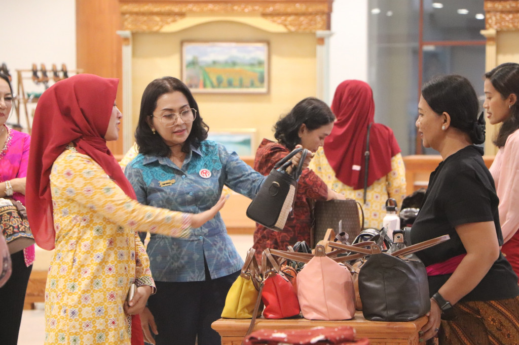 Ketua Dewan Kerajinan Nasional Daerah (Dekranasda) Kabupaten Badung, Nyonya Rasniathi Adi Arnawa, menyambut kunjungan kerja dari Dekranasda Kota Pekalongan, Jawa Tengah, yang dipimpin oleh Ketua Dekranasda Kota P...
